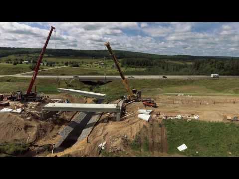 In 2016, the Ministry of Transportation (MTO) of Ontario awarded the contract to Aecon Construction and Materials for $18.9 million to rehabilitate and realign sections of the four-lane Highway 11 near Powassan, approximately 30km south of North Bay. The reconstruction portion of the project included the installation of a new bridge at McGillivray Creek. The MTO wanted a solution that would minimize traffic disruption and reduce construction time. The resulting design was a precast prestressed concrete integral deck bridge. DECAST was awarded the contract for the precast concrete elements, which had challenging requirements and tolerances established by the MTO.